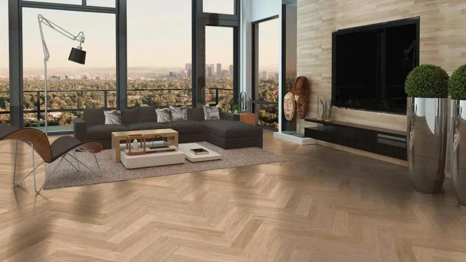 The herringbone pattern got its name from its fictitious resemblance to the bones of this type of fish. Then it becomes one of the most often utilized floor tile designs in the world of rectangles. Many people adore its consistency, which is both aesthetically pleasant and gives space a sense of solidity. As a high-end flooring, it is a fantastic space changer that can work to simultaneously direct the gaze upward and outward. It can be used to embellish a sizable space, enhancing its splendor. It is a simple approach to give a flat or uninteresting environment a dynamic dimension. Herringbone SPC flooring can also be used with other forms of flooring, such ceramic tiles.